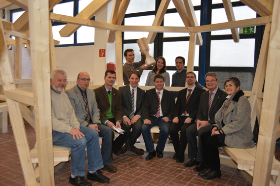 In zwei Gruppen haben die Studierenden unter Wettbewerbsbedingungen zwei unterschiedliche Entwürfe erstellt und die statische Berechnung der Holzkonstruktionen durchgeführt. Praktisch umgesetzt wurden die Entwürfe mit der neuen Abbundmaschine, die innerhalb der praxisorientierten Lehre der FH Aachen im BZE zum Einsatz kommt. Damit konnten nun die ersten sichtbaren und bis zur realen Fertigstellung realisierten Ergebnisse des Studiengangs Holzingenieurwesen einer Jury zur Prämierung vorgestellt werden.