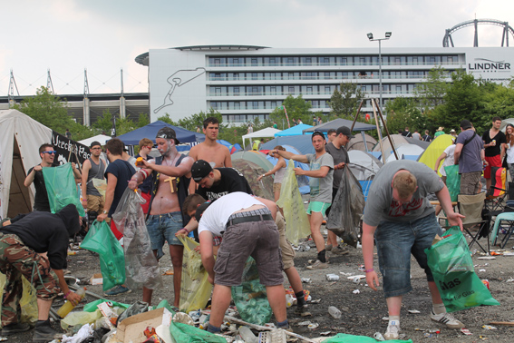 In der Nacht von Dienstag auf Mittwoch begann die große Anreisewelle der Festival-Besucher, die mit vielen Zelten, einer noch größeren Menge an Bier und Dosenfutter, ihr Lager für die nächsten Tage bereiteten und ihr Revier weitläufig absteckten. Selbst diese Planung beansprucht mehrere Tage, die die Besucher gerne in Kauf nahmen. Ein großes Lob bekamen die Camper und Ringrocker von der Polizei und den beiden Organisatoren Marek Lieberberg und seinem Sohn André. Es war ein friedliches Miteinander ohne größere Zwischenfälle. Lediglich kleinere Auseinandersetzungen und Diebstähle fielen häufiger aus. „Doch das“, so der Polizeihauptkommissar „ist bei einer solchen Menschenmenge nie komplett in den Griff zu bekommen“.