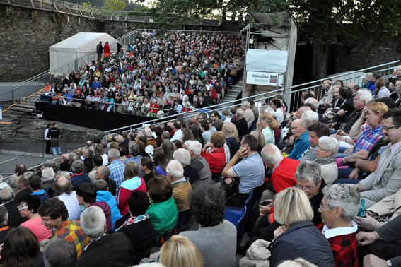 Ein sternenklarer Himmel von dem der Vollmond die Szene beleuchtete, zwei bis auf den letzten Platz besetzte Tribünen und ein gut gelaunter und engagierter Dirigent waren am Mittwochabend Garanten dafür, dass das Benefizkonzert des Heeresmusikkorps 300 zugunsten der Hilfsgruppe Eifel bei den Monschauer Festspielen ein so großer Erfolg wurde.