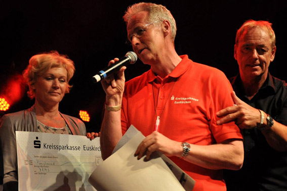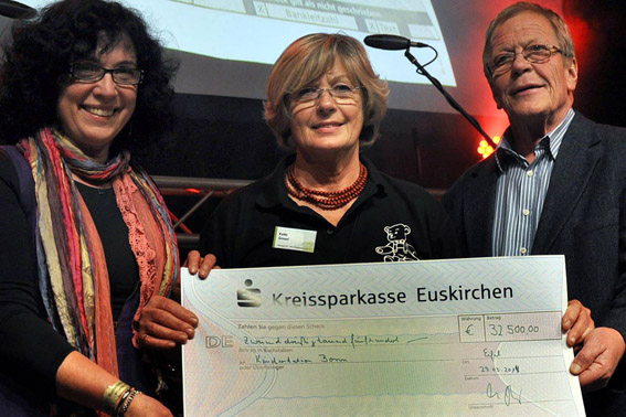 Die Hilfsgruppe verteilte am Oldie-Abend auch zwei große Geldbeträge: 32.500 Euro bekam der Förderkreis der Kinderkrebsstation der Bonner Uni-Klinik für zwei Ambulanzschwestern, die die Hilfsgruppe seit einigen Jahren mit jährlich 65.000 Euro in jeweils zwei Raten finanzieren. Seit der nunmehr 22-jährigen Zusammenarbeit hat der Bonner Förderkreis für krebskranke Kinder insgesamt 692.500 Euro von der Hilfsgruppe bekommen.