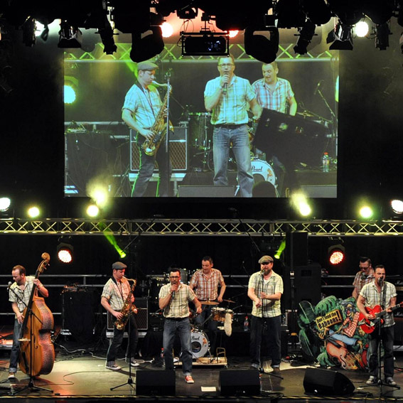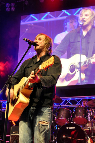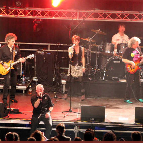 Von Reiner Züll (Text und Bildergalerie) Dirk Rosenbaum von den „Fliegern“ sprang für den plötzlich erkrankten Smokie-Drummer Ron Kelly ein – Über 170 freiwillige Helfer im Einsatz
