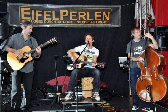 Beim „Warm up“ vor dem Einlass in den Saal konnte die Dominic-Sanz-Band in diesem Jahr nicht aufspielen, weil der Musiker derzeit mit den „Söhnen Mannheims“ auf Tournee ist. Doch der Liedermacher Uwe Reetz war mit seinen „Eifelperlen“ keinesfalls angetreten, um im Foyer der Diskothek Heimatlieder zu spielen. Die Band bot vielmehr unplugged Rock- und Popmusik. Das Warm up auf der großen Bühne bestritt eingangs des Musikmarathons wieder der Saarbrücker Sänger und Gitarrist Franz Josef Raab, der von einem Saxophonisten begleitet wurde.