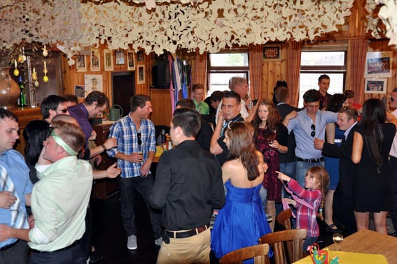 Danach ging es im langen Festzug zum Saale Gier, wo gegen 15 Uhr der traditionelle Maiball begann. Dabei zeigten die Junggesellen, dass sie trotz schlafloser Nacht noch reichlich Kondition zum Feiern hatten.