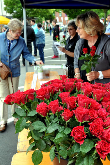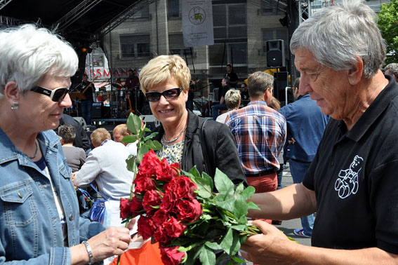 Alle Akteure absolvierten ihre Auftritte kostenlos und wurden dafür von der Hilfsgruppe mit Dankesurkunden entschädigt. „Alle Mechernicher Vereine, die wir angesprochen haben, haben sofort ihr Mitwirken zugesagt“, lobte Willi Greuel deren Engagement. Für die Damen, die das Dankeschön-Event der Hilfsgruppe besuchten, gab es eine besondere Sonntagsüberraschung: 1000 rote Rosen, die das Schleidener Blumenhaus Geschwind gestiftet hatte, wurden verschenkt. Dabei betätigte sich der Vorsitzende Willi Greuel höchstpersönlich als Rosenkavalier.