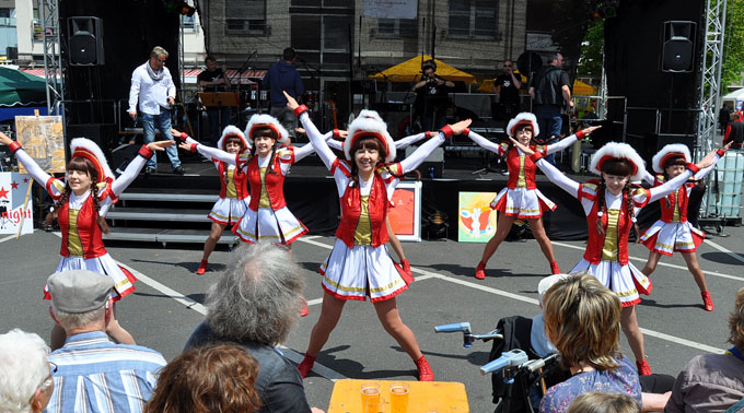 Bevor die Bigband der Mechernicher Prinzengarde zu einem 90minütigen Konzert aufspielte, absolvierte die Tanzgarde der KG „Feytaler Jecke“, die auf den nebenan liegenden Marktplatz einen Stand hatte, bei der Hilfsgruppe einen Spontanauftritt. Dann gab es Folklore vom Feinsten: Die zwölfköpfige serbische Gruppe „Karadjorde“ verbreitete in ihren bunten Kostümen und mit ihren traditionellen Tänzen Lebensfreude pur.