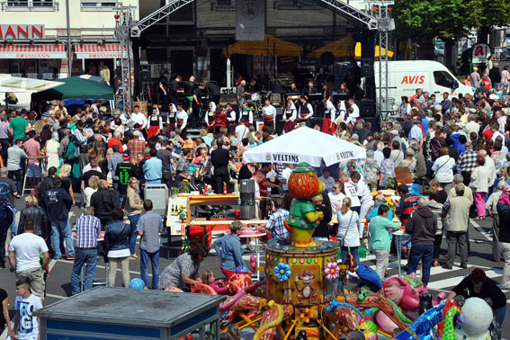 Mechernich – Zu Tausenden strömten die Menschen am Sonntag zum Brunnenfest nach Mechernich, wo in der gesamten Stadtmitte Volksfeststimmung herrschte. Der Wettergott meinte es gut mit den Veranstaltern, so dass an Ende Aussteller und Besucher gleichermaßen zufrieden waren. Um 11.30 Uhr hatten Bürgermeister Dr. Hans Peter Schick und Organisator Heinrich Schmitz das Fest, das seit nunmehr 20 Jahren im Zweijahres-Rhythmus stattfindet, eröffnet. Rund 200 Aussteller und Organisationen beteiligten sich an der Veranstaltung, die Gewerbemesse und Volksfest zugleich war.