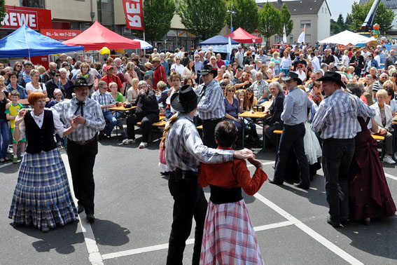 Den Anfang auf der Showbühne machte die Mechernicher Bergkapelle, die eine Stunde lang einen Querschnitt ihres Repertoires darbot. Dirigent Ulrich Poth war der erste, der von Willi Greuel die Dankurkunde entgegennehmen konnte. Es folgte die Band „blass4night“, die kurzfristig für eine ausgefallene Band eingesprungen war. Einen schwungvollen Auftritt legte die Westerngruppe „Silverado Dancers“ auf den Asphalt des Bleibergplatzes hin. Der Beifall des Publikums war den „Dancers“ sicher.