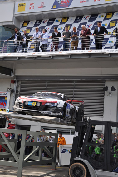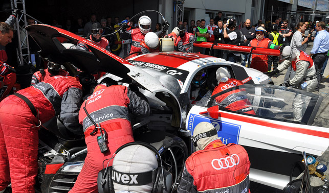 Der Audi vom Team des Stratosphärenspringers Felix Baumgartner landete mit 153 Rennrunden auf dem neunten Gesamtrang.