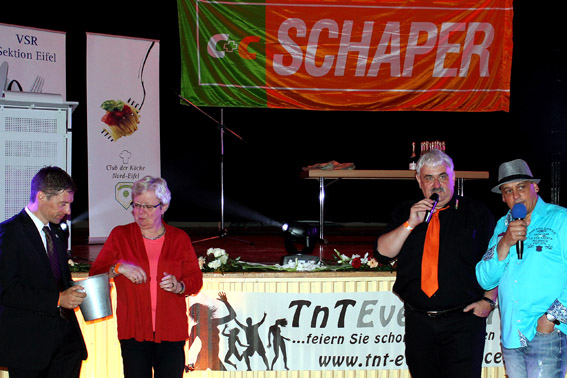 Eine besondere Überraschung hatte Alfred Hellner vom Hauptsponsor CC-Schaper parat: Er hatte den Mallorca-Stimmungssänger und „Partystier“ von Malle, Fino Gastone, für einen Auftritt beim Fest der Azubis verpflichtet. Nach dem Geschmack der jungen Ex-Azubis, ließ Fino es eine halbe Stunde lang so richtig krachen. Zugunsten der Hilfsgruppe startete Alfred Hellner zudem eine Verlosung, deren Hauptpreis ein Wohnzimmerkonzert mit Fino Gastone war. CC-Schaper-Bezirksleiter Steffen Leipard betätigte sich höchstpersönlich als Losverkäufer.