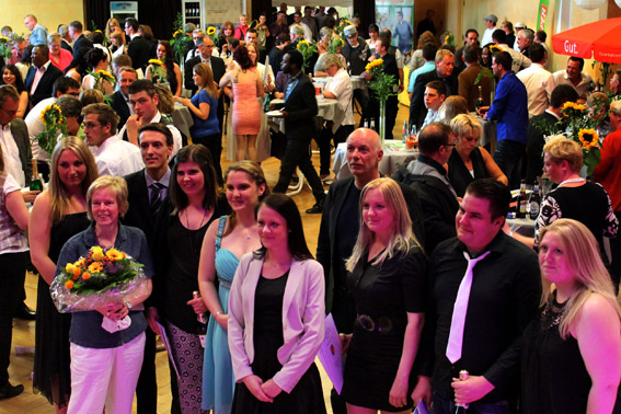 Ehe sich die ehemaligen Azubis, deren Begleitungen und die geladenen Gäste in lockerer Atmosphäre bei Musik, Tanz und Finger-Food-Büffet vergnügen konnten, stand zunächst die Überreichung der Prüfungszeugnisse durch die Industrie- und Handelskammer Aachen auf dem Programm. Bevor IHK-Geschäftsführer Heinz Gehlen die Leistungsnachweise übergab, appellierten Walter Schütz und Dieter Walter an ihre neuen Kollegen, „bei der Stange“ zu bleiben. Ihnen stehe die große weite Welt offen, denn gute Köche sowie Hotel- und Restaurantfachkräfte würden immer gesucht. Dank richteten die beiden insbesondere an die Betriebe, die dem Berufsnachwuchs eine gute Ausbildung zukommen ließen. „Das Gastgewerbe braucht diese junge Leute dringend“, so CdK-Chef Walter Schütz.