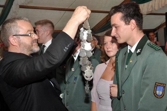 „Es war ein tolles Fest“ resümierte der Vorsitzende der Bruderschaft Joachim Hees beim Krönungsball der Schützen im Festzelt. Zwar war zuvor der traditionelle Umzug der neuen Majestäten zum Schützenplatz sprichwörtlich ins Wasser gefallen, weil es in Strömen goss. Die heftigen Regengüsse am Abend, die einen schwachen Besuch des Krönungsballes zur Folge hatten, waren allerdings der einzige Wermutstropfen beim dreitägigen Fest.