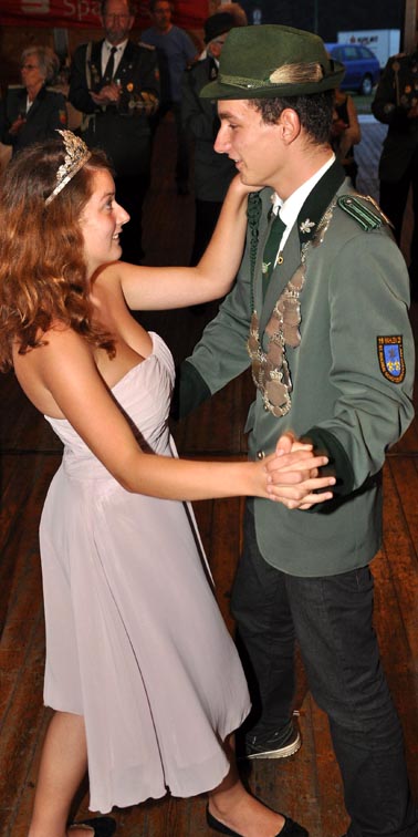Umso spannender gestaltete sich der Wettbewerb der Jungschützen, zu dem Jana Krahe, Stefan Beutler und Meike Krahe angetreten waren. Alle drei pumpten den Holzvogel mit Bleigeschossen aus dem Kleinkalibergewehr voll. Erst mit dem 193.Schuss fiel der Vogel von der Stange, nachdem ihm Stefan Beutler den letzten Volltreffer verpasst hatte. Mit seiner Prinzessin Jessica Preußer wird Stefan ein Jahr lang die Wahlener Jungschützen repräsentieren.