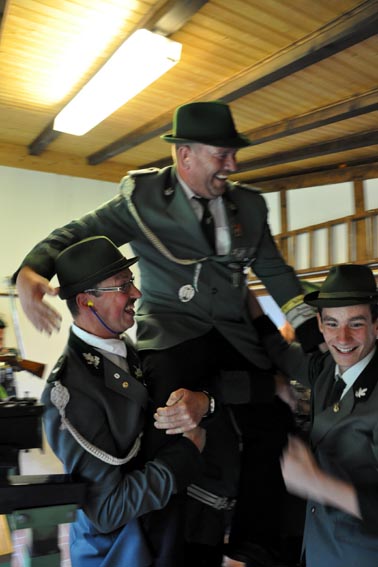 Beim Königsschießen am Abend gab es die Neuauflage eines Bruder-Duells vor zehn Jahren. Jungschützenmeister Dieter Krahe und Kommandant Lothar Krahe hatten 2004 um die Königswürde geschossen, wobei Dieter das Duell damals gewonnen hatte und Bruder Lothar dann aber ein Jahr später Schützenkönig wurde.