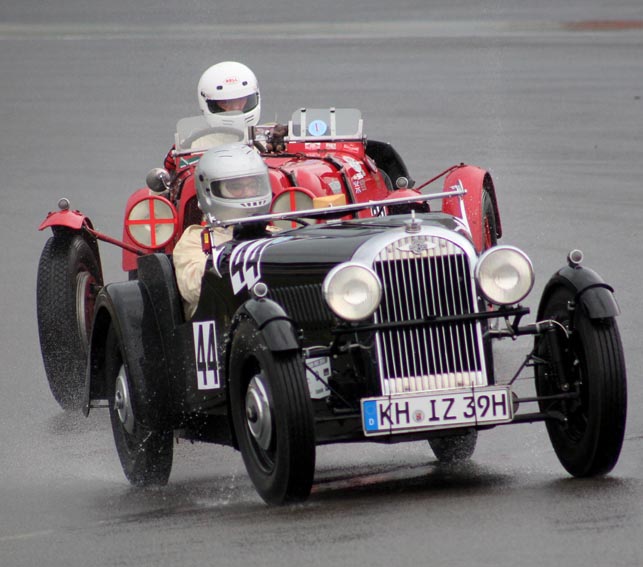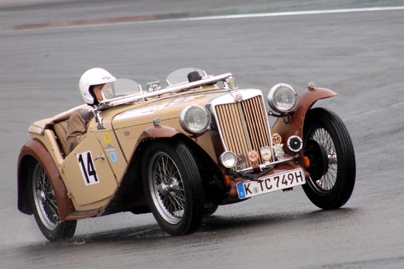 Eifel/Nürburgring – Typisches unbeständiges Nürburgring-Wetter bestimmte am Wochenende das Bild beim 42. AvD-Oldtimer-Grand-Prix auf der Eifelrennstrecke im Schatten der Nürburg. Regen und Sonnenschein wechselten sich ab, wobei sich die Sonne jedoch freitags und sonntags recht rarmachte. Über 50.000 Fans des historischen Motorsports ließen sich von zeitweise heftigen Regengüssen die gute Laune nicht verderben. Fahrzeuge aus der 100-jährigen Motorsportgeschichte, die die Fans auf der Rennstrecke und im Fahrerlager erleben konnten, entschädigten für das unbeständige Wetter.