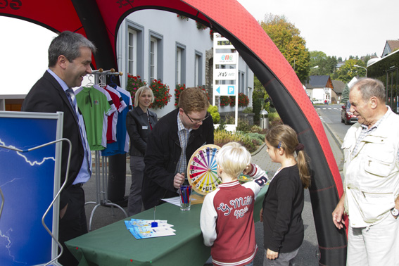Kall – Für das letzte Wochenende im September setzt die Energie Nordeifel jedes Jahr voll und ganz auf die Sonne. Besonders im geschützten Hof des regionalen Energiedienstleisters herrschen beim großen Familienfest im Rahmen der Kaller Herbstschau stets verlässlich hochsommerliche Temperaturen. Bereits ab dem frühen Morgen ließen es sich die Besucher daher auch in diesem Jahr dort wieder bei Musik und diversen Imbissen gut gehen.
