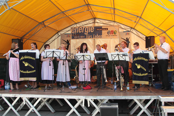 Die Cover-Rockband „Celebration“ hatte rockige Nummern im Gepäck, während die „Ahrhüttener Musikanten“ eher der zünftig-gemütlichen Blasmusik frönten.