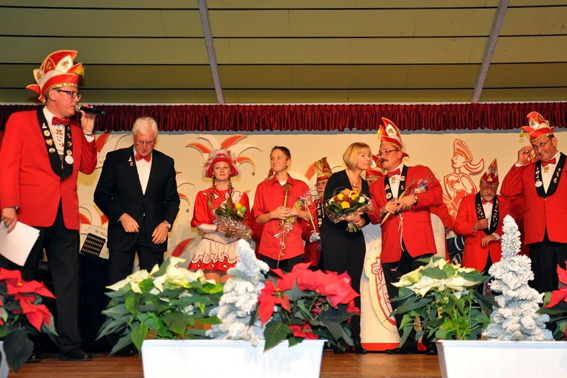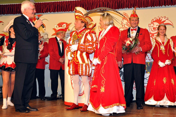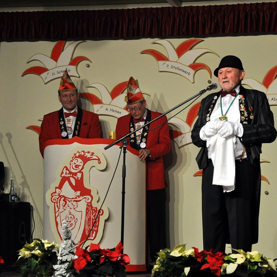 Mit seinem Stellvertreter Norbert Niebes war Heribert Kaptain, der Präsident des Regionalverbandes Düren(RVD), dem 126 Karnevalsgesellschaften angehören, zum Festabend gekommen, um dem Vorsitzenden Werner Keutgen zum „seltenen Jubiläum“ zu gratulieren und um eine Ehrenurkunde des RVD zu überreichen. Kaptain bezeichnete Kall als Karnevalshochburg, in der die Menschen dem närrischen Brauchtum über einen Zeitraum von 111 Jahren die Treue gehalten hätten.