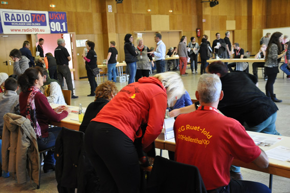 Kall/Hellenthal – Die Hilfsgruppe Eifel hat am Sonntag die Marke von 23.000 typisierten Stammzellenspendern im Kreis Euskirchen geknackt. Bei der zehnten Typisierungsaktion, die der Kaller Förderkreis für tumor- und leukämiekranke Kinder seit 1992 mit der Deutschen Knochenmark Spenderdatei (DKMS) veranstaltet hat, kamen 760 Menschen zum Bluttest in die Hellenthaler Grenzlandhalle. Sie alle wollen der fünfjährigen, leukämiekranken Lara aus Erftstadt helfen, deren Leben nur durch eine Stammzellenübertragung gerettet werden kann. Viele Menschen waren auch aus dem benachbarten Belgien zur Typisierung angereist.