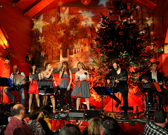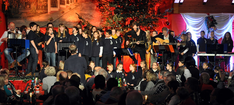 Die Paveier, die mit den Cölln Girls, dem Redner Matin Schopps und dem Musicalsänger Norbert Conrads bekannte Vortrags-Künstler aus der Domstadt mit nach Kommern gebracht hatten, präsentierten ein völlig neues Konzertprogramm, das sie mit dem Lied „Winter es jekumme“ und „Äppel, Nöss un Marzipan“ eröffneten. Es folgten „Wenn em Ovve et Holz knack“ und „Nit alle Engel han Flüjel“. Traditionsgemäß wurden die Besucher zum Konzertende bei den bekanntesten Weihnachtsliedern „Oh du fröhliche…“ und Stille Nacht…“ zum Mitsingen eingeladen.