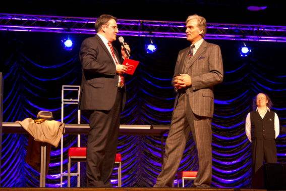 Kreissparkasse Euskirchen lud zu einem Erich-Kästner-Abend in das Kurhaus Gemünd ein – Vorstandsvorsitzender Udo Becker würdigte Sittler als einen der besten deutschen Schauspieler der Gegenwart