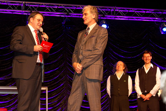 Was die Zuschauer und den Gastgeber besonders freute: Walter Sittler mischte sich nach dem Ende seiner Darbietungen einfach mit unters Volk und stand beim anschließenden Umtrunk der Kreissparkasse für Fragen und Autogramme jedermann zur Verfügung.