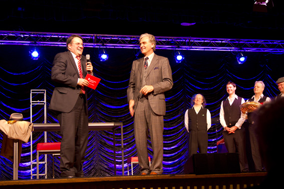 Für die atemberaubende schauspielerische Leistung Walter Sittlers, für die Musiker und natürlich auch für Regisseur Martin Mühleis gab es am Ende der Veranstaltung „Standing Ovations“. Der Vorstandsvorsitzende der Kreissparkasse Euskirchen, Udo Becker, würdigte Sittler als einen der besten Schauspieler Deutschlands und zog den Hut vor dessen immenser Gedächtnisleistung.
