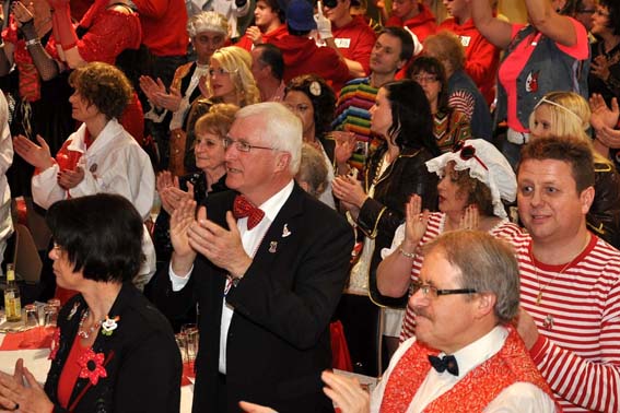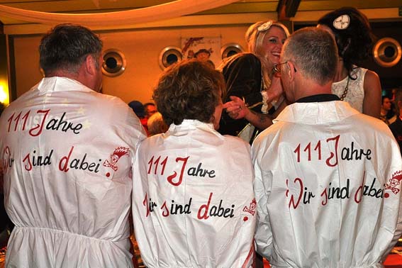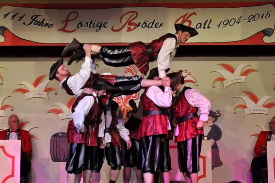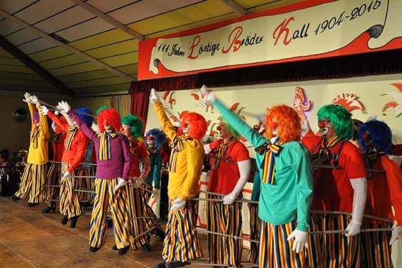 Die „Löstige Bröder“ revanchierten sich mit einem tollen Sitzungsprogramm, das sich bis weit nach Mitternacht hinzog. Vorzeitig nach Hause ging dennoch keiner, denn auch zu vorgerückter Stunde jagte ein Höhepunkt den anderen. Besonders vereinseigene Kräfte hatten sich anlässlich des Jubiläums ins Zeug gelegt, wobei die Frauen der Gruppe „Sahneschnittchen“ der Sitzung mit ihrer Clownerie ein „Sahnehäubchen“ aufsetzten.