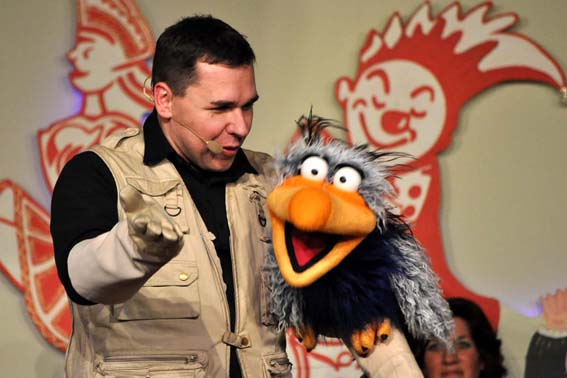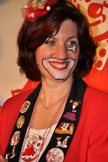 Dabei schien es auf den ersten Blick, dass die fünf Sahneschnittchen um Vize-Präsidentin Trixi Haseleu Zuwachs bekommen hatten, denn auf der Bühne zählte man fünf Dreiergruppen mit insgesamt 15 tanzenden bunten Clowns, die mit dünnen Stangen miteinander verbunden waren. Echt war in jeder Gruppe nur der Clown in der Mitte, während die anderen lediglich Puppen waren, die durch die Stangenverbindung alle Bewegungen der Originale mitmachten.