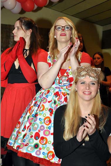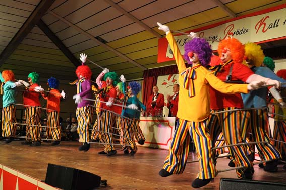 Ein absoluter Höhepunkt weit nach Mitternacht war der Auftritt der „Sahneschnittchen“, die seit drei Jahren die Kaller Prunksitzungen durch besonders ideenreiche Darbietungen bereichern. Diesmal erschienen Gruppe als Clowns verkleidet.