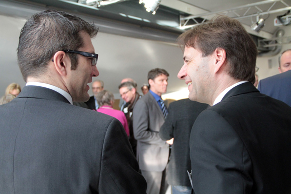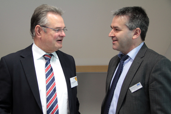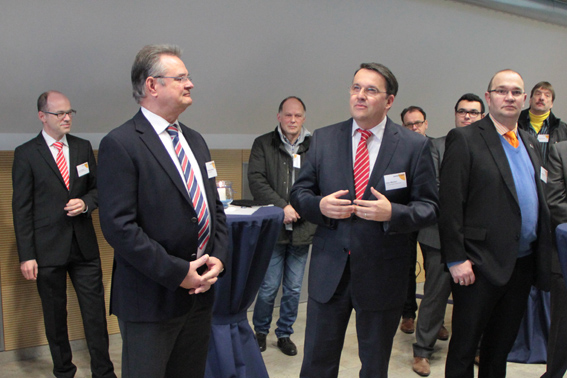Kall – Trotz glatter Straßen und Grippewelle fehlten am Mittwochmorgen beim Unternehmerfrühstück „viertelvoracht“, einer Partnerinitiative der Kreissparkasse Euskirchen (KSK) und der Kreiswirtschaftsförderung, nur wenige der 80 angemeldeten Unternehmer und Unternehmerinnen. Das Interesse an der Energie Nordeifel schien sehr groß zu sein. Kein Wunder, denn die meisten Menschen sind seit jeher mit dem regionalen Energiedienstleister Tag und Nacht, beruflich und privat, auf das engste verbunden, und zwar über ihre Stromleitung. Dennoch hat man nur selten Gelegenheit, einmal in das Herz der Energieversorgung zu blicken, das mit 970 Quadratkilometern immerhin ein Gebiet so groß wie Berlin mit Strom versorgt. „Auch wenn die Einwohnerzahl doch von Berlin etwas differiert“, scherzte „ene“-Geschäftsführer Markus Böhm.