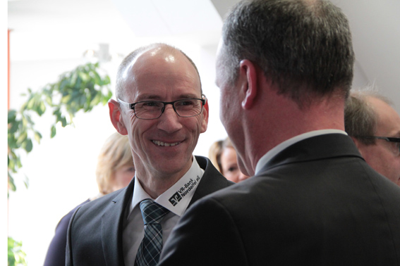 Begrüßt wurden die Gäste von Landrat Günter Rosenke und dem Vorstandsvorsitzenden der KSK, Udo Becker. Für den Landrat war es ein Stück weit auch ein Empfang im eigenen „Wohnzimmer“, denn Rosenke ist bereits seit 21 Jahren im Aufsichtsrat der „ene“. Der Landrat wies vor allem auf die neuen Anmeldemodalitäten für das Unternehmerfrühstück hin, die jetzt einfach über die neue Homepage www.viertelvoracht.eu abgewickelt werden können und bedankte sich bei den Organisatoren Iris Poth und Claudia Albold von der Kreiswirtschaftsförderung sowie Alexandra Bennau und Holger Glück von der KSK, die wieder einmal für das Gelingen der seit 2013 regelmäßig stattfindenden Veranstaltung gesorgt hatten. Sein besonderer Dank aber galt den „ene“-Damen unter der Leitung von Sarah Kaspar, die an diesem Tag die Bewirtung der Gäste übernahmen.