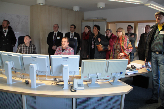 Abschließend hatten die Besucher die Gelegenheit, einmal ins Herz der Energie Nordeifel zu blicken, in die sogenannte Netzwarte. Dabei handelt es sich um eine komplexe Schaltzentrale, von der aus nicht nur die Lastströme im 20 Kilovolt-Versorgungsnetz und entsprechende Schaltzustände der Betriebsmittel visualisiert werden, sondern von hier aus werden auch Störungsmeldungen angenommen und gemeinsam mit den Technikern vor Ort die Störungsursache und deren -behebung koordiniert. Gleichzeitig wird über modernste Fernwirktechnik, die Steuerung und Überwachung von dezentralen Erzeugungsanlagen, im wesentlichen Wind- und Solarparks, im Südkreis Euskirchen sichergestellt.