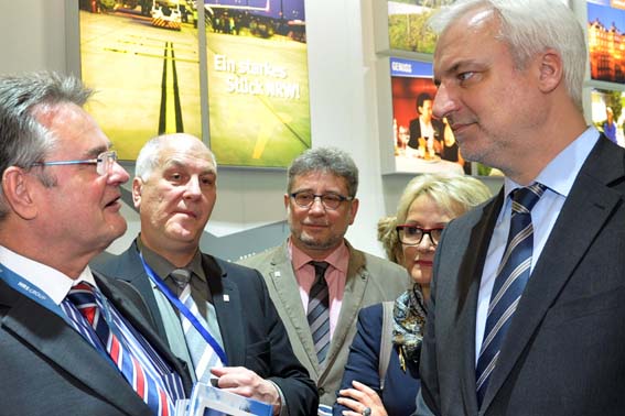 Münstereifels Ex-Bürgermeister Achim Bädorf (Mitte) rührte in seiner Eigenschaft als geschäftsführender Vorsitzender des Verbandes Deutscher Kneippbäder und Kneippkurorte die Werbetroimmel auf der ITB. Unser Bild zeigt ihn im Gespräch mit NRW-Wirtschaftsminster Garrelt Duin. Foto: Reiner Züll