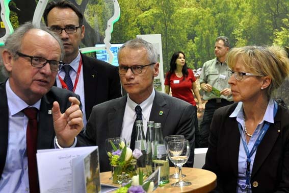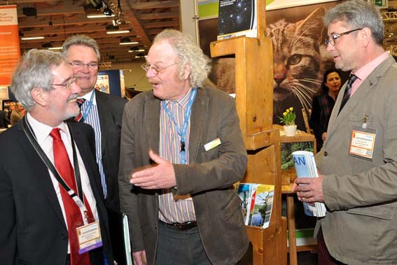 NRW-Staatssekretär Dr. Günther Horzetzky (links) am Stand des Nationalparks Eifel. Er ließ sich von Henning Walter und Michael Lammertz (rechts) informieren. Foto: Reiner Züll