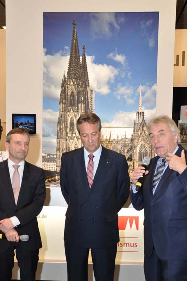 Drei auf einen Streich: Die Oberbürgermeister (von links) Thomas Geisel (Düsseldorf), Jürgen Nimptsch (Bonn) und Jürgen Roters (Köln) präsentierten ihre Städte auf der ITB in Berlin gemeinsam. Foto: Reiner Züll