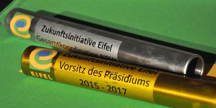 Die Staffelstäbe des Präsidiums der Zukunftsinitiative Eifel, die beim Eifel-Ardennen-Abend wechselten. Foto: Reiner Züll