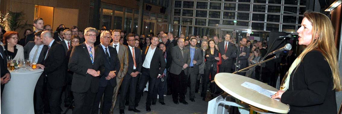 Beim Eifel-Ardennen-Abend in der Berliner Vertretung des Landes NRW würdigte NRW-Staatssekretär Dr. Günther Horzetzky die grenzüberschreitenden Aktivitäten der Zukunftsinitiative Eifel, der acht Kreise, acht Wirtschaftskammern und 52 Kommunen und die Deutschsprachige Gemeinschaft (DG) Belgien angehören. Foto: Reiner Züll