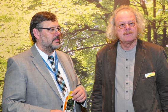 Der Wirtschaftsausschuss des NRW-Landtages besuchte in Berlin den Stand des Nationalparks. Unser Bild zeigt den Ausschussvorsitzenden Georg Fortmeier (links), der sich von Nationalpark-Chef Henning Walter informieren ließ. Foto: Reiner Züll