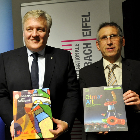 Präsentierten in Berlin nicht nur Kunst: Dürens Landrat Wolfgang Spelthahn (links) und Heimbachs Bürgermeister Peter Cremer konnten auch stolze Zuwächse bei den Übernachtungen in Heimbach verkünden. Foto: Reiner Züll