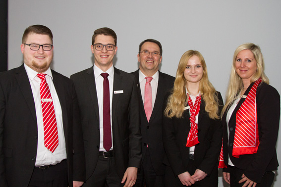 Besonders gut schnitten die hauseigenen Auszubildenden ab: Die „DAXubis“ Jaqueline Schmitz, Daniel Franzen, Torben Latz, Jana Scheiff und Alexander Uerdingen räumten nicht nur den 1. Preis im Geschäftsgebiet der Kreissparkasse Euskirchen ab, sondern belegten auch einen hervorragenden 5. Platz im gesamten Rheinischen Sparkassen- und Giroverband. 1.999,75 Euro „erwirtschafteten“ sie in der Nachhaltigkeitswertung.
