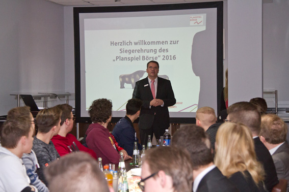 Das Planspiel Börse ist ein europaweiter Online-Wettbewerb, bei dem Schüler und Studenten ihr virtuelles Kapital an der Börse vermehren können – oder eben verlieren. Gehandelt wird mit den Kursen realer Börsenplätze. Im jetzt ausgezeichneten Wettbewerb wurden 31.625 Depots mit einem Umsatz von 2,8 Milliarden Euro gebildet.