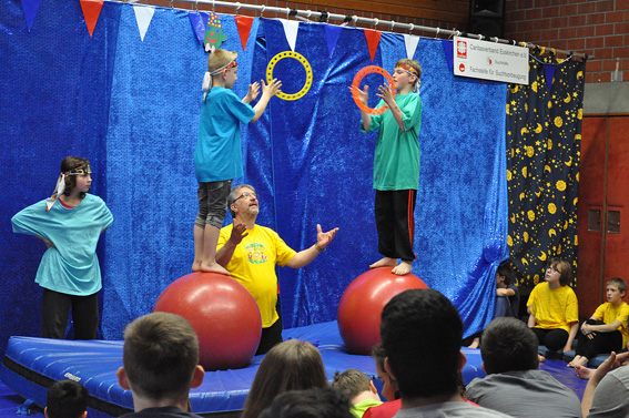 In einer Projektwoche an der Hans-Verbeek-Schule Euskirchen durften sich Schülerinnen und Schüler als Jongleure, Akrobaten, Clowns und Fakire ausprobieren