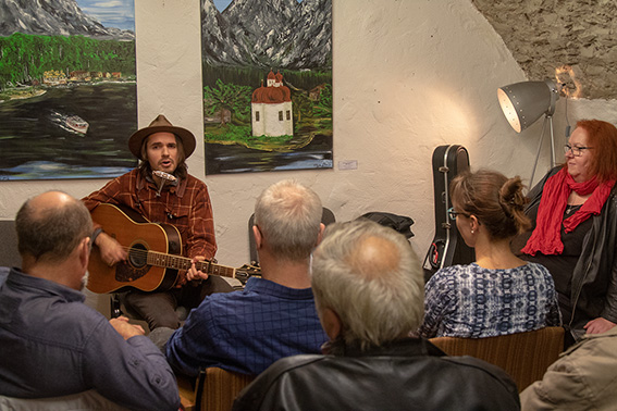 Und so singt sich Dan Raza in „You Can’t Smile At A Crocodile“ den Blues von der Seele, spricht von den Lügen, den dreckigen Lügen von Politikern, davon, dass man Ratten und Schlangen nicht trauen kann. Gleich darauf verlässt er den Pfad des ruhigen Protestes, der Brite kündigt stattdessen einen Song über die Sehnsucht des Herzens an, den der Weltenbummler in Bulgarien geschrieben hat: „Denn zu viel Politik ist für keinen gut.“ Es ist die Kraft der leisen Töne, mit denen Dan Raza das bunt gemischte Publikum im vollbesetzten Gewölbekeller der Galerie Eifel Kunst bewegt und dafür sorgt, dass die Zuhörer nach dem Konzert mit entspannten, glücklichen Gesichtern nach Hause gehen – und dennoch oder vielleicht gerade deshalb genug zum Nachdenken haben.