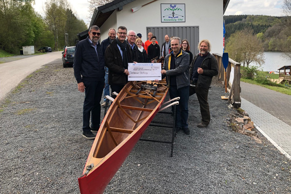 Die Dahlemer Stiftung honoriert diese vorbildliche Vereinsarbeit jetzt mit einer Zuwendung in Höhe von 1000 Euro. Der Stiftungsbeirat unter Vorsitz von Reinhold Müller hat sich in seiner letzten Sitzung hierfür ausgesprochen. Die symbolische Scheckübergabe fand zum Saisonstart am Bootshaus am Kronenburger See statt.