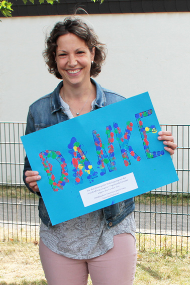 Doch bevor die Süßigkeiten die Runde machten, bekamen die beiden KSK-Leute erst mal selbst etwas geschenkt: eine selbstgebastelte Nestschaukel aus buntem Papier als Dankeschön. Die KSK Euskirchen hatte nämlich, soviel hatten die Kinder verstanden, dem Förderverein der Kindertagesstätte Geld gegeben, damit diese die neue Nestschaukel hatte kaufen können. Der Förderverein selbst hatte vorab schon bei vielen Veranstaltungen Geld für die Schaukel gesammelt, wie die Fördervereinsvorsitzende Monika Hülsmann berichtete. Und mit dem Geld der KSK war nun endlich genug zusammen, um die lang ersehnte Investition tätigen zu können. „Wir sind froh, dass die neue Schaukel jetzt wieder sicher für die Kinder ist“, so Hülsmann.