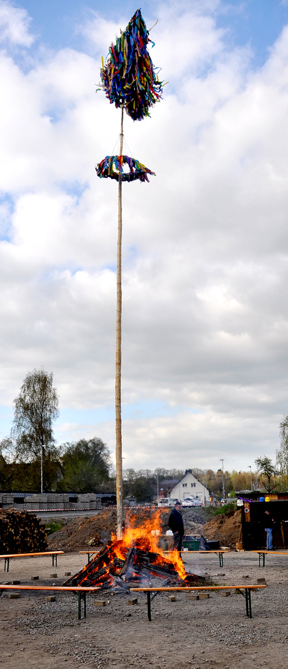 Kall – Bei sonnigem Frühlingswetter gingen in Kall die traditionellen Maifeiern über die Bühne. Nach dem Ausrufen der Maipaare am Samstagabend, dem Maisingen der „Geloogsjungen“ am späten Abend und dem Zusammentreffen der Kaller Bevölkerung am Maifeuer, fanden die Feierlichkeiten am Sonntagnachmittag mit dem traditionellen Festumzug und dem sich anschließenden Maiball im Saal Gier ihren Höhepunkt. Im Mittelpunkt stand dabei das Maikönigspaar, Christian Poensgen und Rabea Blens, das schon am Vorabend des Maifeiertages nach dem Ausrufen der Maipaare als Königspaar gefeiert worden war.