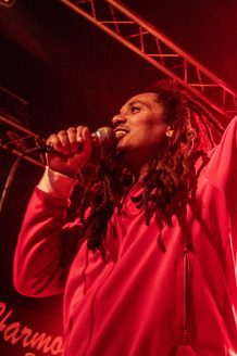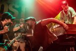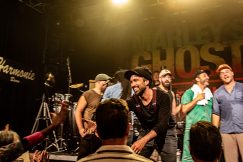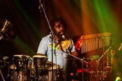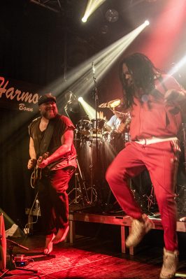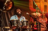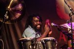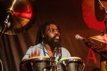 Als wäre das nicht schon genug geballte Professionalität mit überschäumender Spielfreude kombiniert, erweitert die Kernformation ihr aufwändig gewebtes Soundgeflecht regelmäßig durch befreundete Gastmusiker. So lässt in der „Harmonie Bonn“ Schlagzeuger und Perkussionist Oshane Campbell die Hände über den Bongos, Congas, Cowbells und zahlreichen weiteren Klanginstrumenten fliegen. Der Wahl-Kölner hat in seiner jamaikanischen Heimat mit Reggae-Legenden gearbeitet, gehört zur festen Formation von „Patrice“, jammt aber leidenschaftlich gerne mit „Marley’s Ghost“.