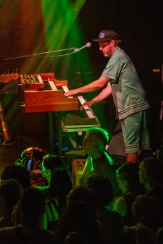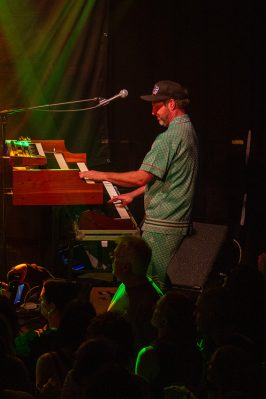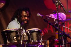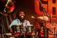Als wäre das nicht schon genug geballte Professionalität mit überschäumender Spielfreude kombiniert, erweitert die Kernformation ihr aufwändig gewebtes Soundgeflecht regelmäßig durch befreundete Gastmusiker. So lässt in der „Harmonie Bonn“ Schlagzeuger und Perkussionist Oshane Campbell die Hände über den Bongos, Congas, Cowbells und zahlreichen weiteren Klanginstrumenten fliegen. Der Wahl-Kölner hat in seiner jamaikanischen Heimat mit Reggae-Legenden gearbeitet, gehört zur festen Formation von „Patrice“, jammt aber leidenschaftlich gerne mit „Marley’s Ghost“.