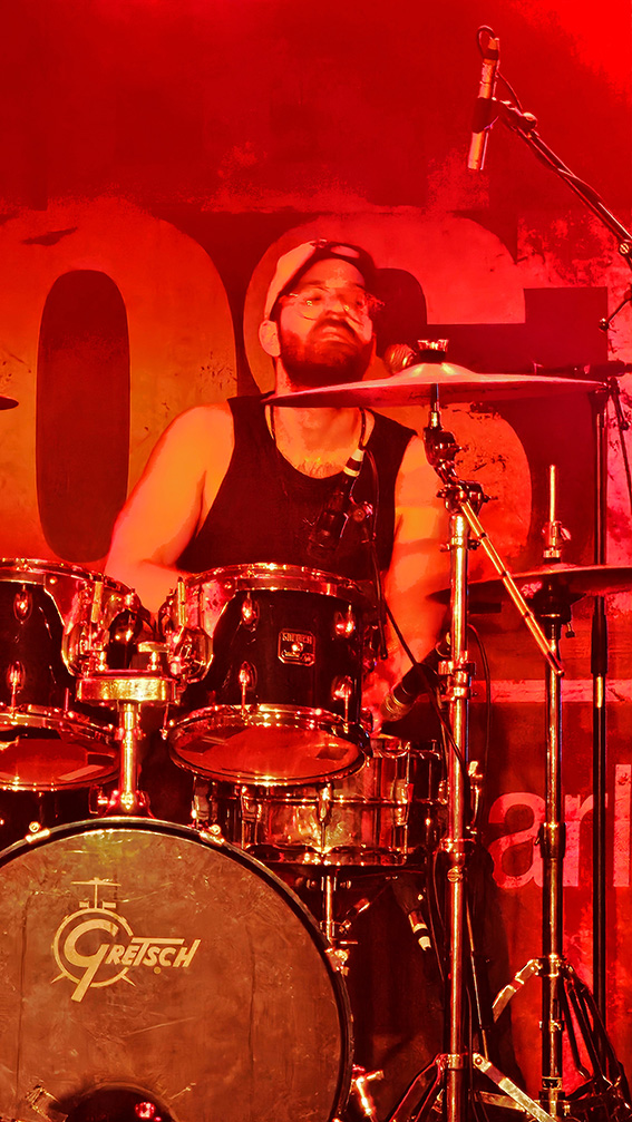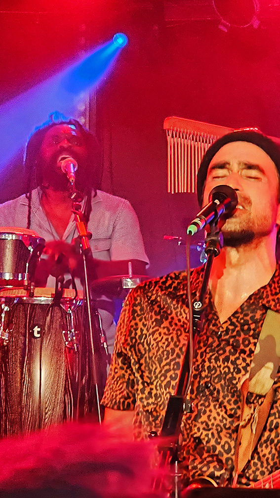 Angeheizt wie von einem Buschfeuer sorgt der studierte Jazz-Schlagzeuger Jannis Lewe derweil mal für die treibenden Rhythmen, mal für untermalende Becken-Schmeichler, dann wieder für rockige Power-Einlagen, noch verstärkt durch den regelmäßigen Gastmusiker Oshane Campbell an den Percussions. Der hat sein furioses Handwerk in seiner Heimat Jamaika gelernt, ist Stamm-Drummer von „Patrice“, außerdem mit karibischen Reggae-Ikonen auf Welttournee unterwegs und zudem so angetan von „Marley’s Ghost“, dass er, wann immer möglich, für ein zusätzliches Rhythmus-Feuer der Stammbesetzung sorgt.