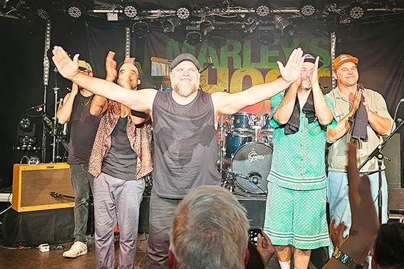 Siegburg – Wenn man den Erfolg eines Reggae-Konzerts mittels Luftfeuchtigkeit bestimmen könnte, hätten „Marley`s Ghost“ bei ihrem jüngsten Auftritt im Siegburger Club „Kubana“ mal wieder eine Goldmedaille abgeräumt. Die erfolgreichste Bob-Marley-Tribute-Band hierzulande sorgte nicht nur auf der Bühne für schweißtreibende Höchstleistungen, sondern regte auch die bunte Publikums-Schar durch ihren unverwechselbaren Groove zum ausdauernden Tanzen, Singen und Feiern an. Trotz der Feierlaune treffen die immer noch hochaktuellen emotionalen Botschaften von Bob Marley über soziale Ungerechtigkeiten und dem Wunsch nach einem friedlichen Miteinander direkt in die Herzen des Publikums, was man etwa beim vielstimmigen Mitsingen von „Get Up, Stand Up“ erleben konnte.